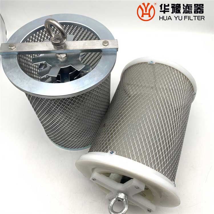 磁網過濾器工作原理,利用潤滑油自重狀態下的流動,經簡單的網過濾和磁場吸附,使污垢及時得以分離,磁網一體化裝置是由圓筒形過濾網(帶底座)和磁串組成,在潤滑油經該裝置落入油箱時,油液中直徑大于網目尺寸的污垢和一些鐵質微粒就會被阻擋于裝置內,從而達到分離的目的。
